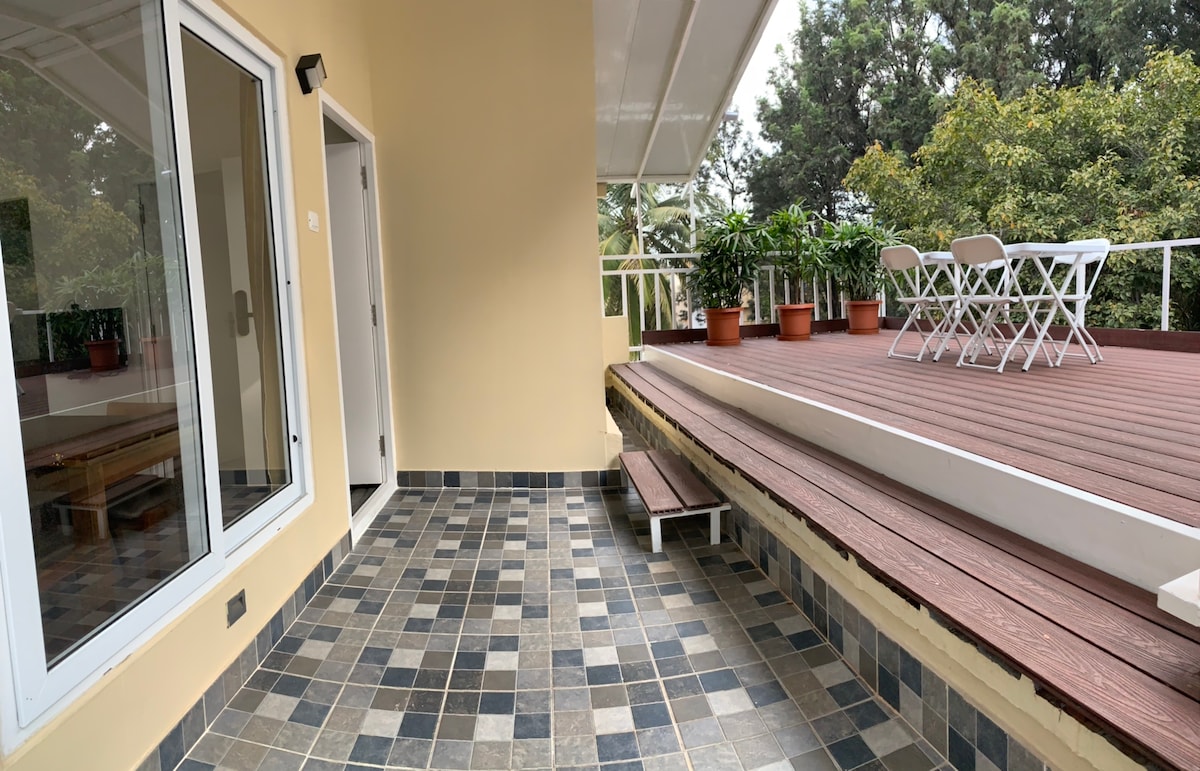 Experience the comfort of staying in a beautiful penthouse overlooking the greenery of a beautiful park in a quiet neighbourhood. The property is located close to Jayadeva Hospital, Gopalan Mall and Vegacity Mall.The spaceThe place is unique with automated access to the house with a passcode.You can use the entire deck facing the park.Guest accessThe penthouse is on the 3rd floor and you will have to climb stairs.Other things to noteCheckout our other properties from the below link:-http://www.airbnb.co.in/p/leisurehomes